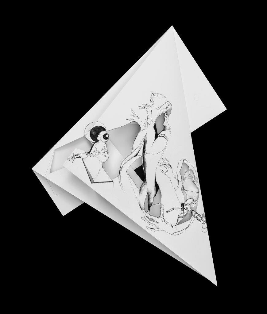 Nina Annabelle Märkl, Fragmented Fiction XIII, 2016, Cut-Out und Tuschezeichnung auf gefaltetem Papier, 45 x 39 cm, Foto: Walter Bayer © VG Bild-Kunst, Bonn 2016