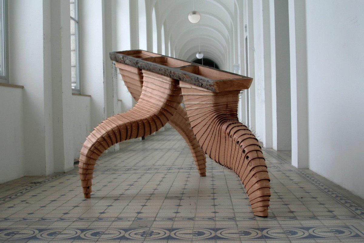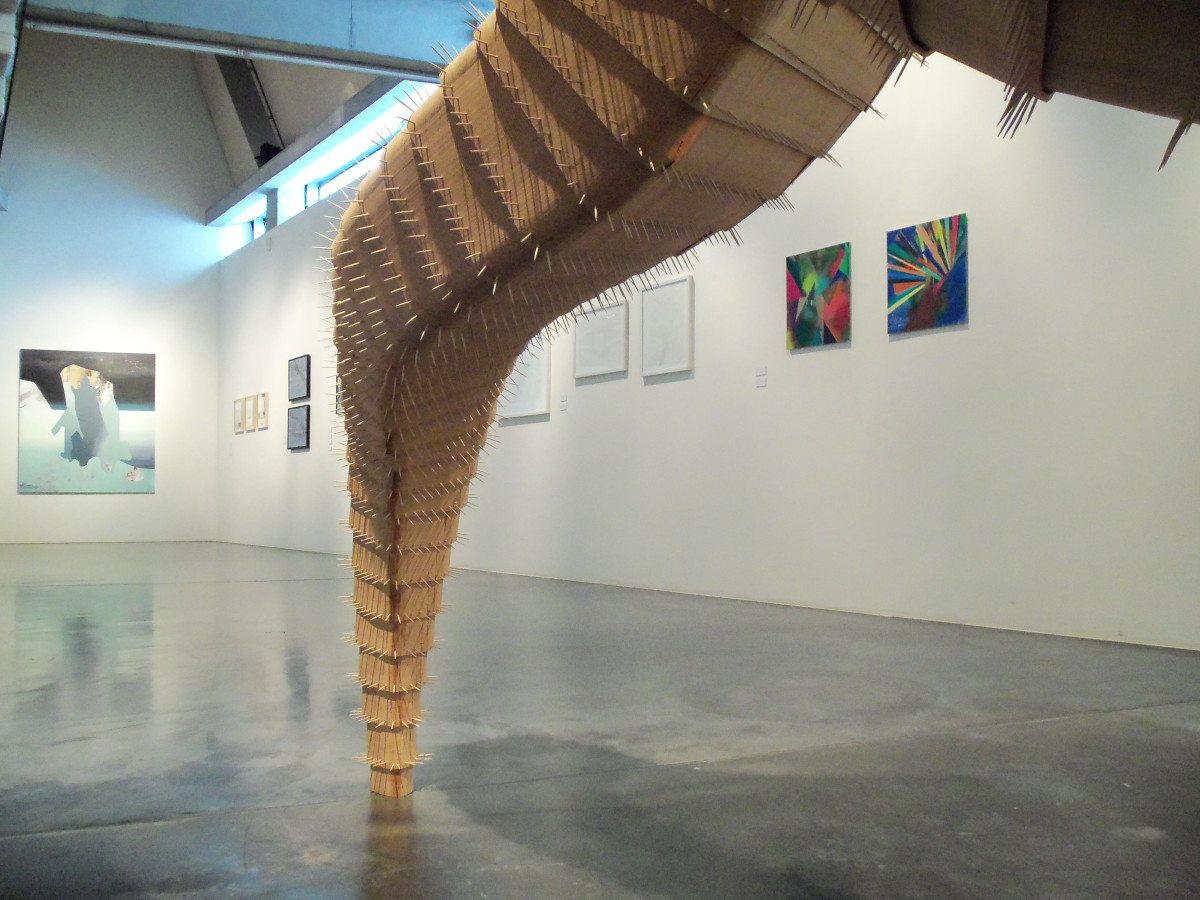 Thomas Breitenfeld, Hystrix, 2013, Lärchenholz, Zahnstocher, 200 x 300 x 170 cm (Ausstellungsansicht AdBK, München) Foto: Josef Beyer © Thomas Breitenfeld
