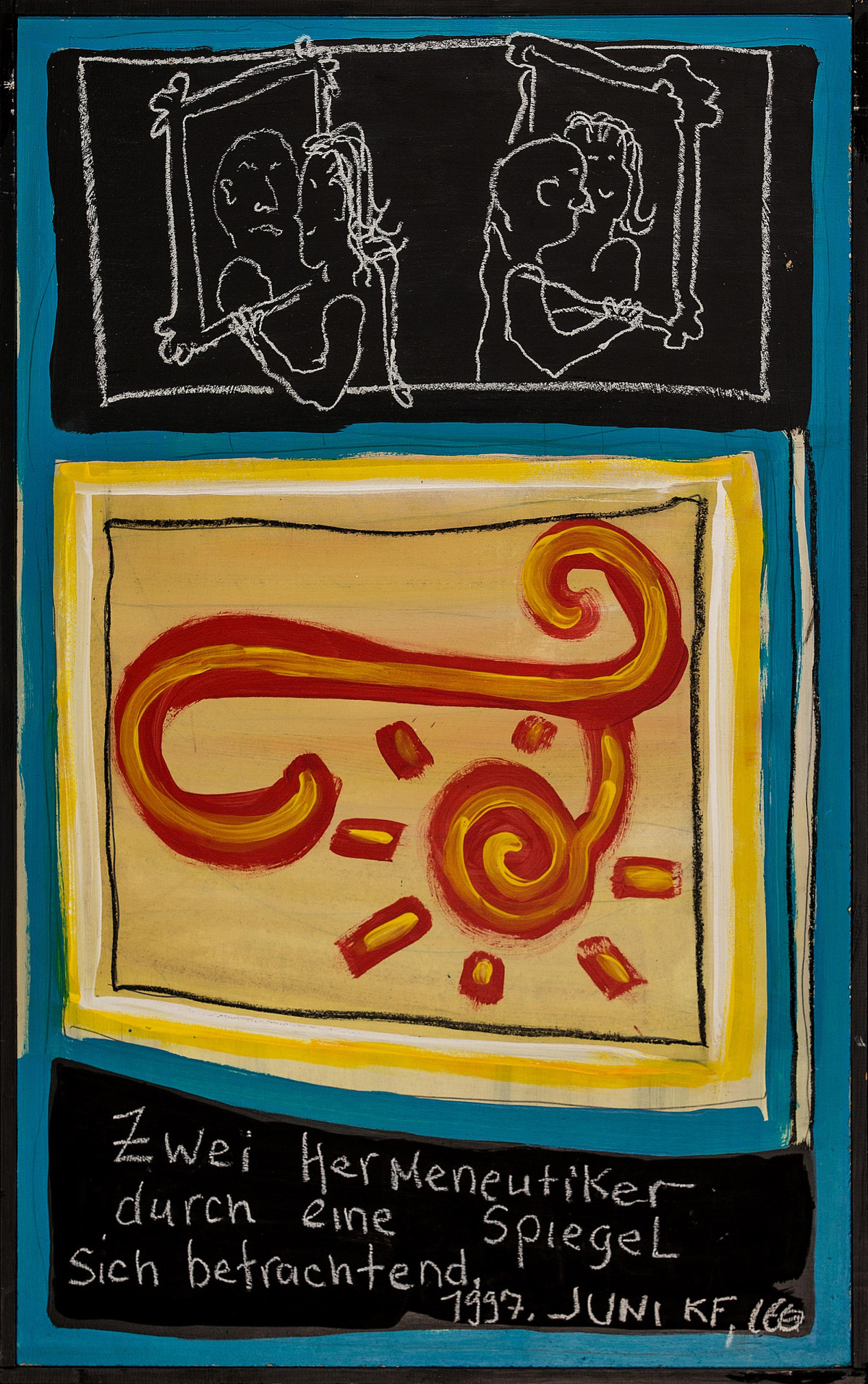 Der Fokus der Ausstellung lag jedoch auf der künstlerischen Produktion der vergangenen 30 Jahre aus dem Kontext des Bezirkskrankenhauses Kaufbeuren. So vereinte die Ausstellung Werke bekannter Hauptfiguren der Außenseiterkunst wie Dietrich Orth und Wolfgang Hueber, die zu den wenigen Ausnahmen gehören, deren Schaffen weltweit in Museen und Galerien ausgestellt wurde, mit dem Schaffen kaum bekannter Künstler, deren Werke erstmals einem breiten Publikum vorgestellt wurde.
