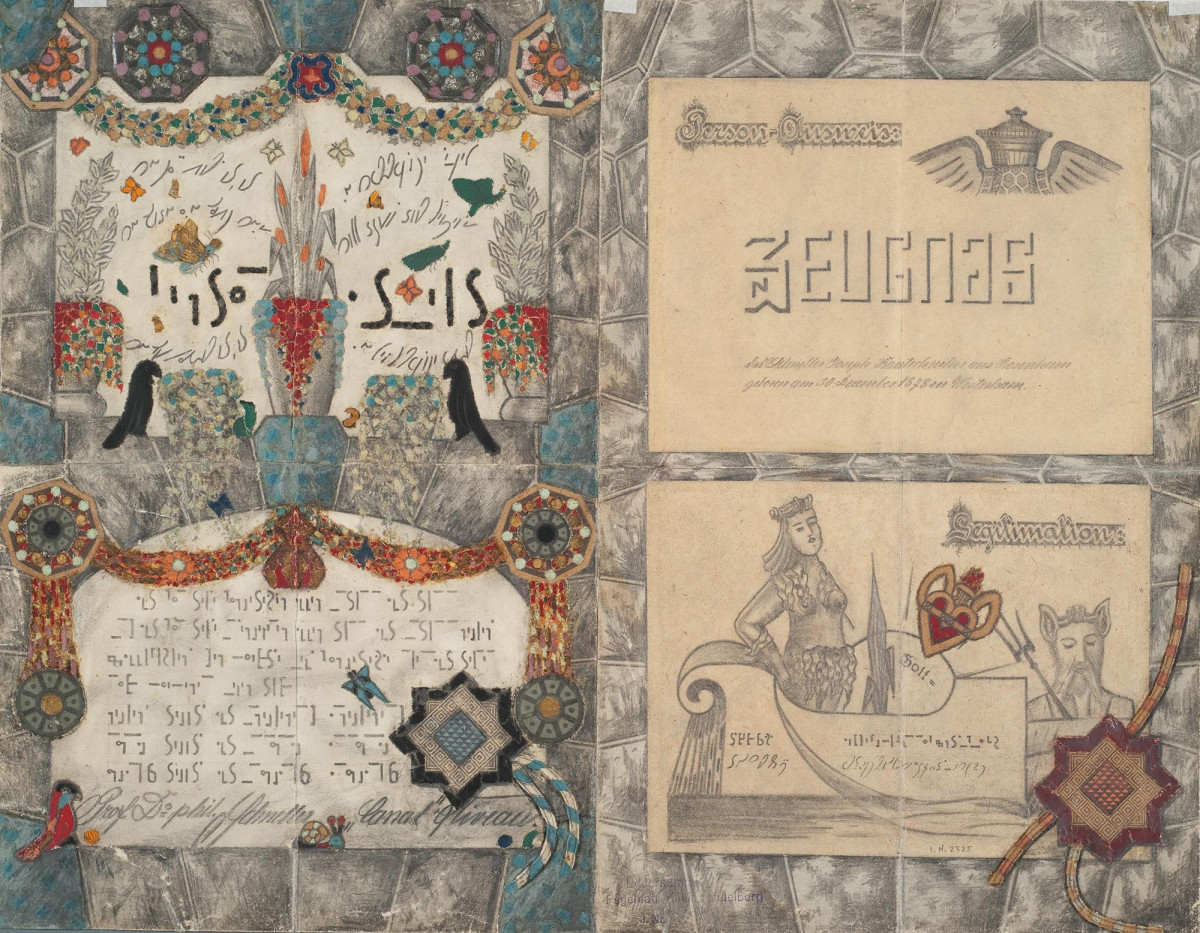 Künstler: Laurie Berner, Wolfgang Hueber, Dietrich Orth, Simone Stingele | Künstler, Sammlung Prinzhorn, Heidelberg: Anonym (Fall 497), Franz Karl Bühler, Gertrud Fleck, Karl Genzel (nur Abb.), Paul Goesch, Josef Grebing, Georg Lindemann (nur Abb.), August Natterer (nur Abb.), Joseph Schneller