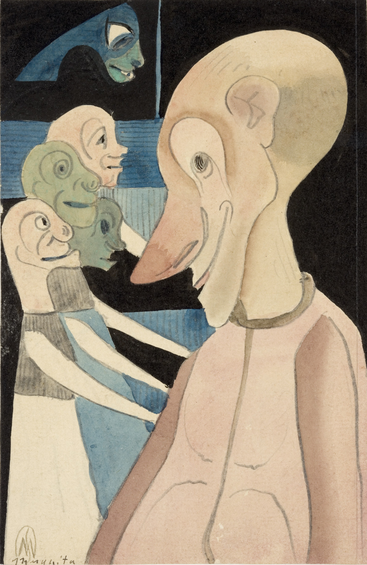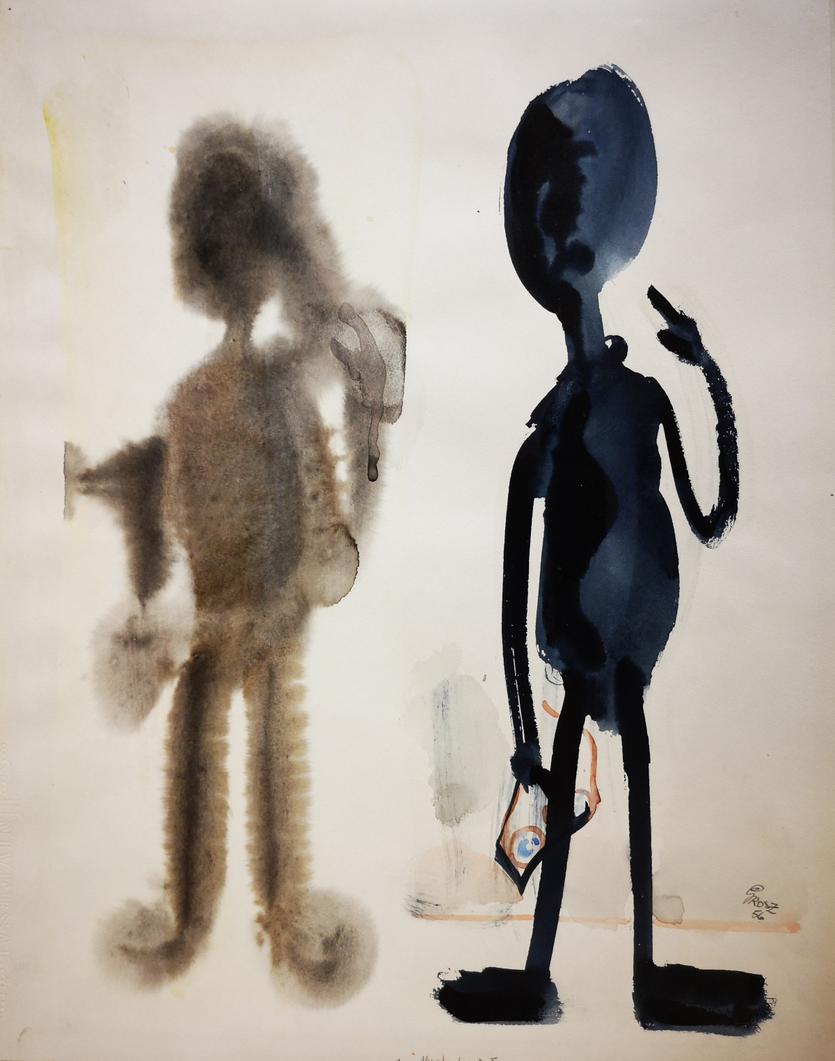 George Grosz, My shadow & I, 1956, Aquarell, 500 x 391 mm, George Grosz Estate, Berlin © VG Bild-Kunst, Bonn 2018