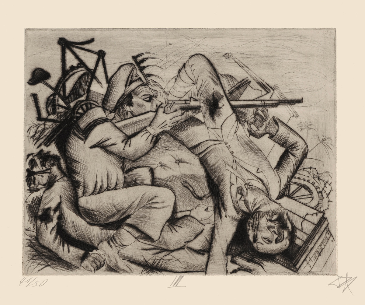 Otto Dix, Die Barrikade, 1922, Radierung Nr. III, aus der Mappe "Tod und Auferstehung", 274 x 347 mm, Courtesy Sammlung Karsch/Nierendorf, Berlin © VG Bild-Kunst, Bonn 2018