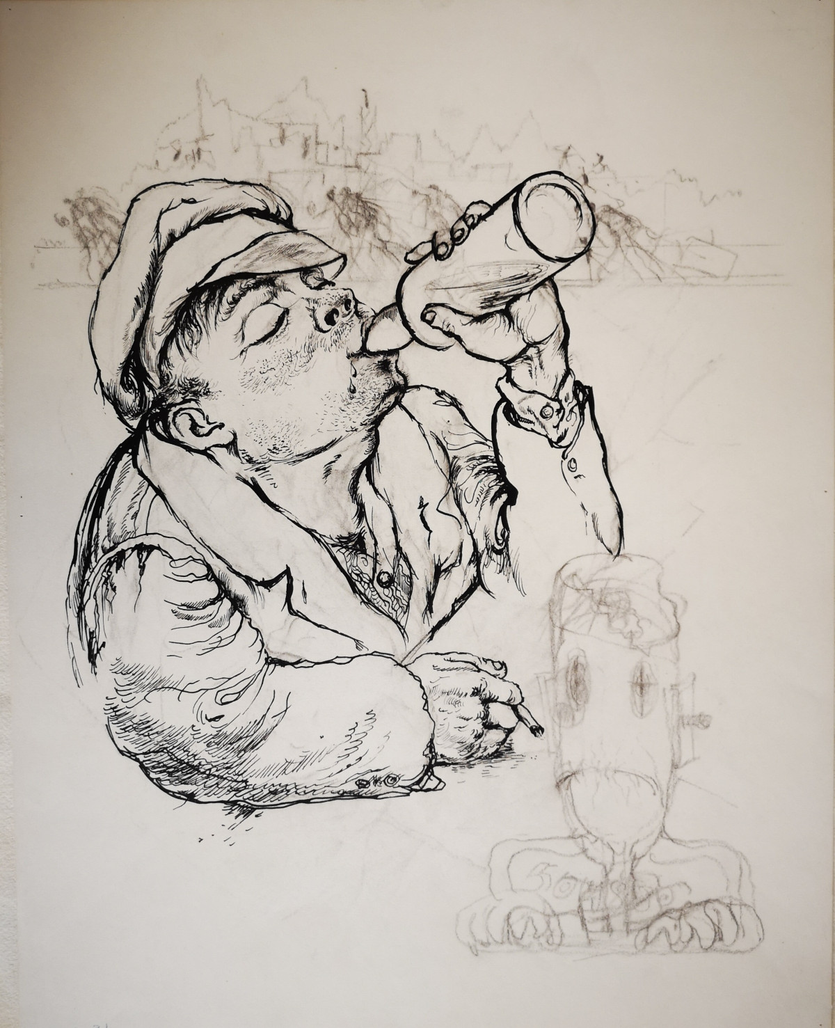 George Grosz, Wodka, 1950, Rohrfeder, Feder und Kreide, 501 x 393 mm, George Grosz Estate, Berlin © VG Bild-Kunst, Bonn 2018