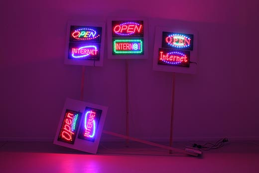 Mit den Arbeiten von Aram Bartholl, JODI und Evan Roth präsentiert das kunsthaus kaufbeuren erstmals Gegenwartskunst, die sich mit den diversen Aspekten der digitalen Medien auseinandersetzt. Den Besucher erwarten Browserkunst, LED-Objekte und bewegte Computerprojektionen, aber auch Rauminstallationen und Wandarbeiten.