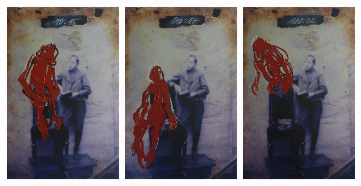 Anja Güthoff, 10:15, 10:17, 10:22, 2014, dreiteilige Arbeit, Acrylmalerei auf Fotografie (Direktdruck auf gebürstetem Aluminium), 50 x 75 cm, Auflage 1/3 © Anja Güthoff