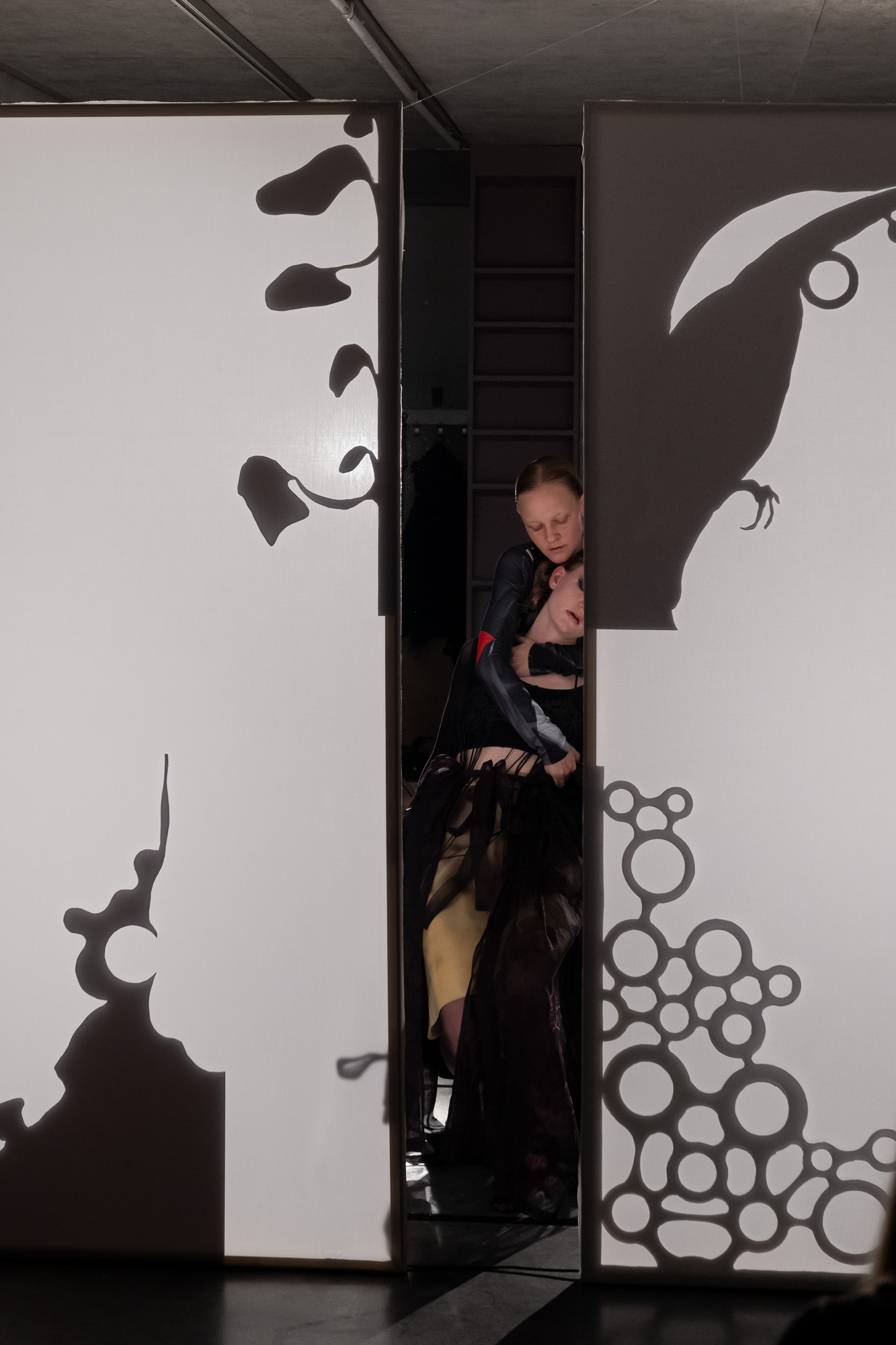 In Zusammenarbeit mit der bildenden Künstlerin Maria Moritz und der Kostümdesignerin Carla Renée Loose verbinden sich Glas, Malerei, Textil, Druck, Kostüme und Körper zu einer immersive Atmosphäre, in der sich Ebenen überlagern, in den Vordergrund verschieben oder in den Hintergrund treten. Im Oktober 2025 finden der Videodreh und eine Aufführung des Schattenspiels im Foyer des Kunsthauses statt. Die Installation Giants. Eine Reise ohne Ende verbindet die neue Videoarbeit mit dem Bühnenbild der Künstlerin Maria Moritz und Kostümobjekten von Carla Renée Loose zu einem begehbaren Raum für eine fragmentarische Erzählung über Identität als bewegliches, sich veränderndes Konzept. Die Videoinstallation verweist zurück auf filmische Traditionen, indem sie die Bewegungen der Performer*innen als Struktur für den Schnitt nutzt und zugleich mit klassischen Mitteln wie Kameraperspektive und Bildkomposition eine zusätzliche visuelle Ebene entfaltet.