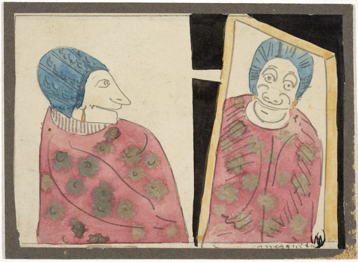 Samuel Jessurun de Mesquita, Ohne Titel (Fantasie, Frau und Spiegelbild), um 1905, Bleistift, Aquarellfarbe und Feder in schwarzer Tusche, 104 x 145 mm, Foto: Jan Zweerts, Courtesy und © Sammlung C. O. Wolters