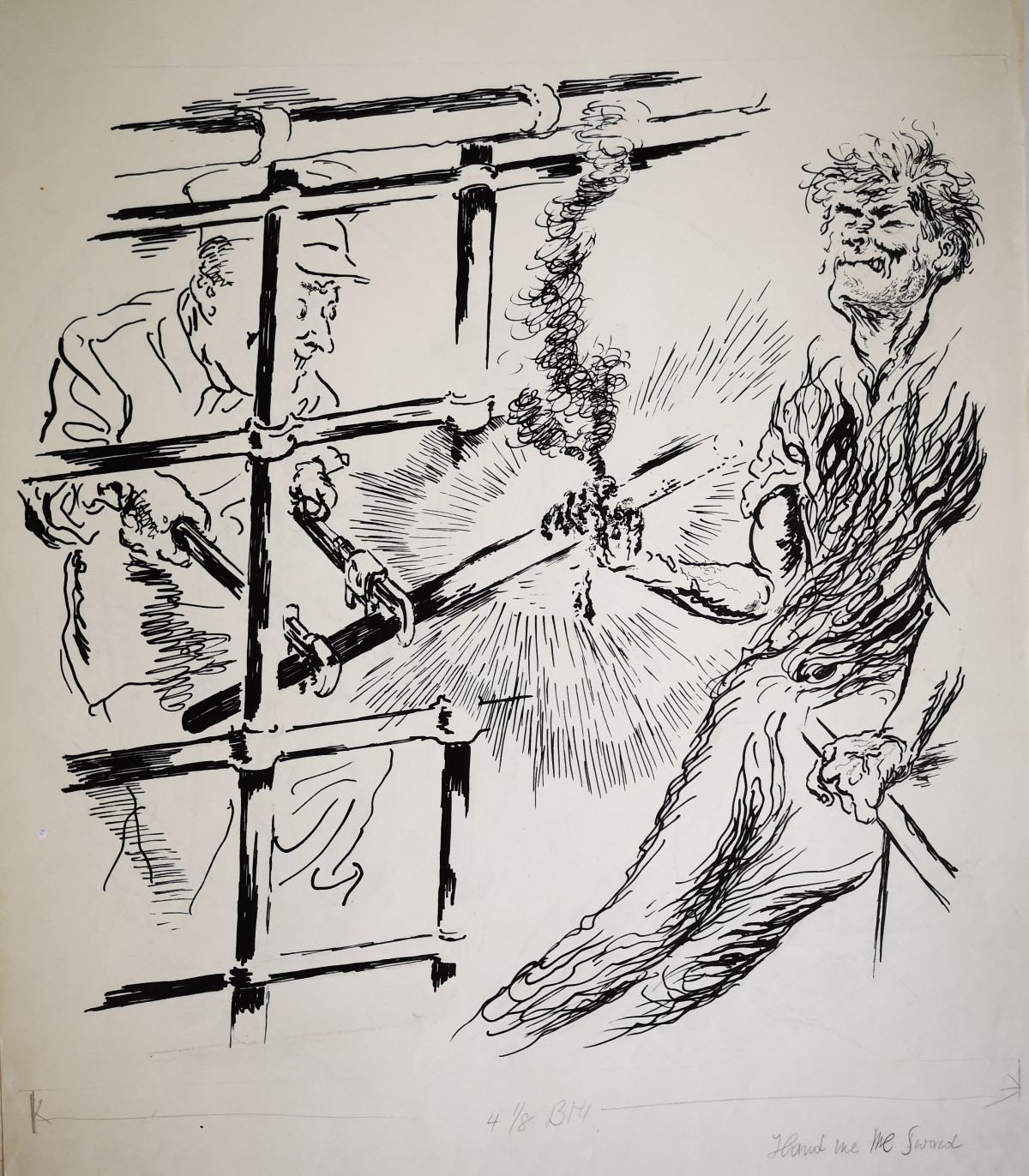 George Grosz, Hand Me Me Sword, 1941, Rohrfeder und Feder, Illustration zu Ben Hecht "1001 Afternoons in New York", The Viking Press New York 1941, 593 x 460 mm, George Grosz Estate, Berlin © VG Bild-Kunst, Bonn 2018