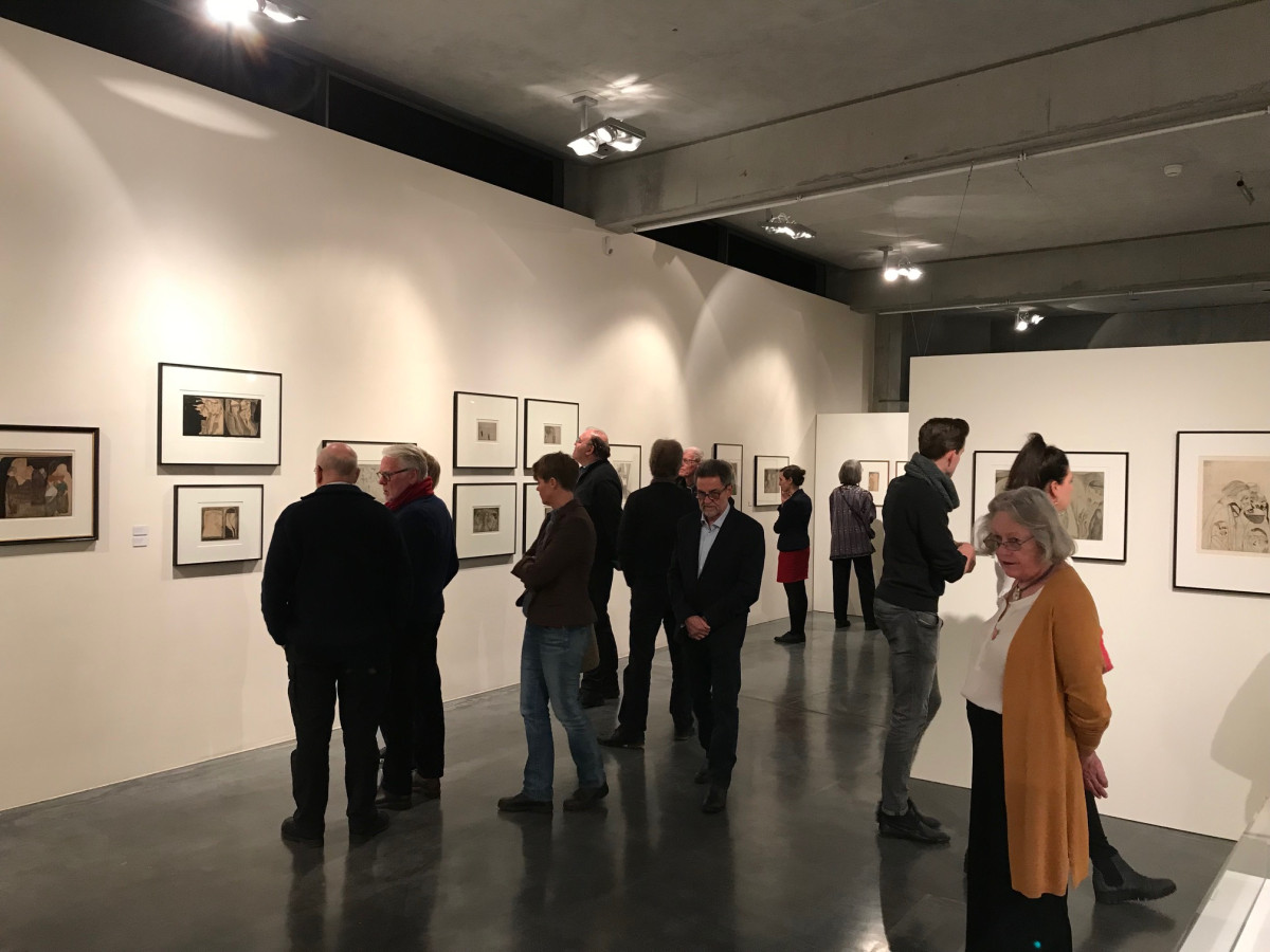 Ernst Barlach, Aus dem Kommissionsbericht der Übersichtigen, 1907, Feder über Kohle auf Zeichenpapier, 449 x 591 mm, Courtesy und © Ernst Barlach Haus, Stiftung - Hermann F. Reemtsma, Hamburg