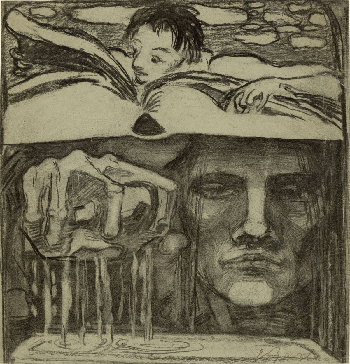Ernst Barlach, Symbol der Erkenntnis, um 1905, Kohle auf Zeichenpapier, 252 x 242 mm, Courtesy und © Ernst Barlach Haus, Stiftung - Hermann F. Reemtsma, Hamburg