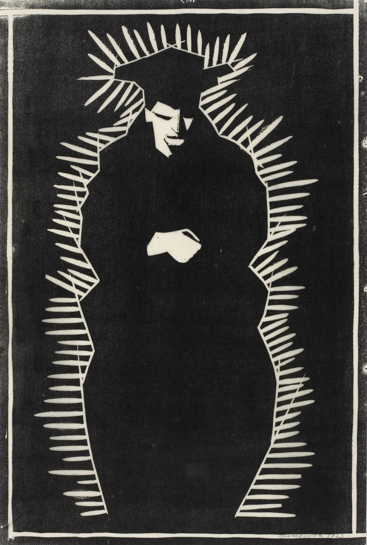 Samuel Jessurun de Mesquita, Ohne Titel (Stehende Figur), 1923, Holzschnitt, 390 x 265 mm, Foto: Jan Zweerts, Courtesy und © Sammlung C. O. Wolters