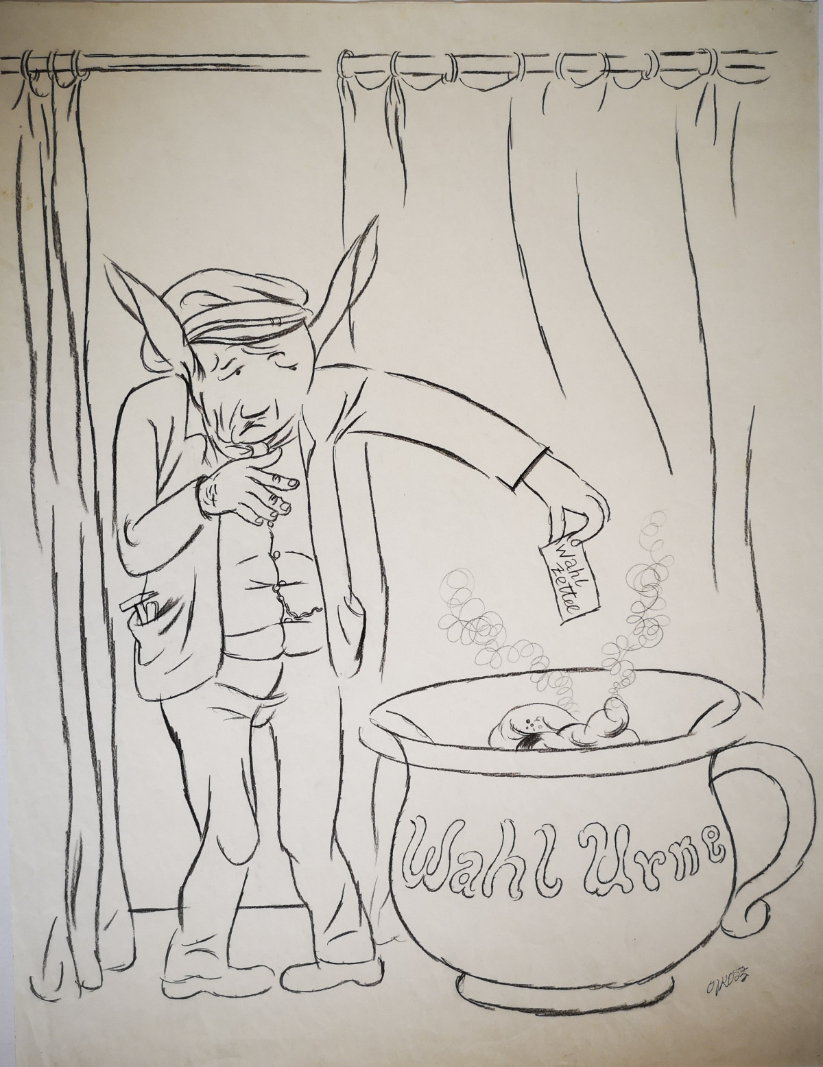 George Grosz, Der deutsche Wähler, 1924, Bleistift und Fettkreide, 602 x 461 mm, George Grosz Estate, Berlin © VG Bild-Kunst, Bonn 2018