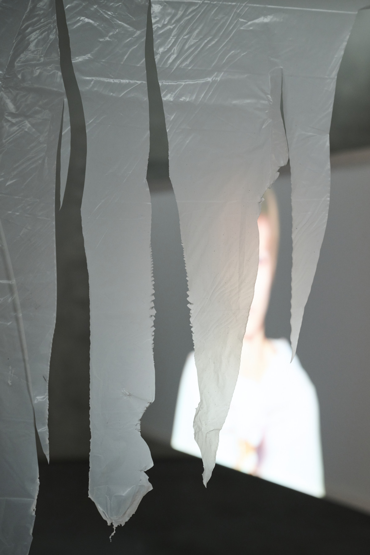 Im Saal des Kunsthauses entsteht teilweise live vor Publikum eine raumgreifende Installation, die konstant im Wandel zu sein scheint. Das Zentrum bildet ein küchenähnlicher Raum, der als Sinnbild des zentralen Ortes jeder Behausung für gemeinsames Speisen, Sprechen und Austausch steht. Die Installation ist mit verschiedenen Funktionen versehen und wirkt gleichzeitig dysfunktional, fragmentiert. Wände sind nicht fest verankert und scheinbar massive Elemente sind leicht und beweglich. Anknüpfend an den Gedanken der Heimatstube präsentiert sich ein surrealistisches Setting zwischen Diorama, Spielfeld und Filmset. Eine Kulisse, die zum Verweilen einlädt, ein Zufluchtsort, ein geschützter Raum. Nur wer schützt sich hier vor was oder vor wem?